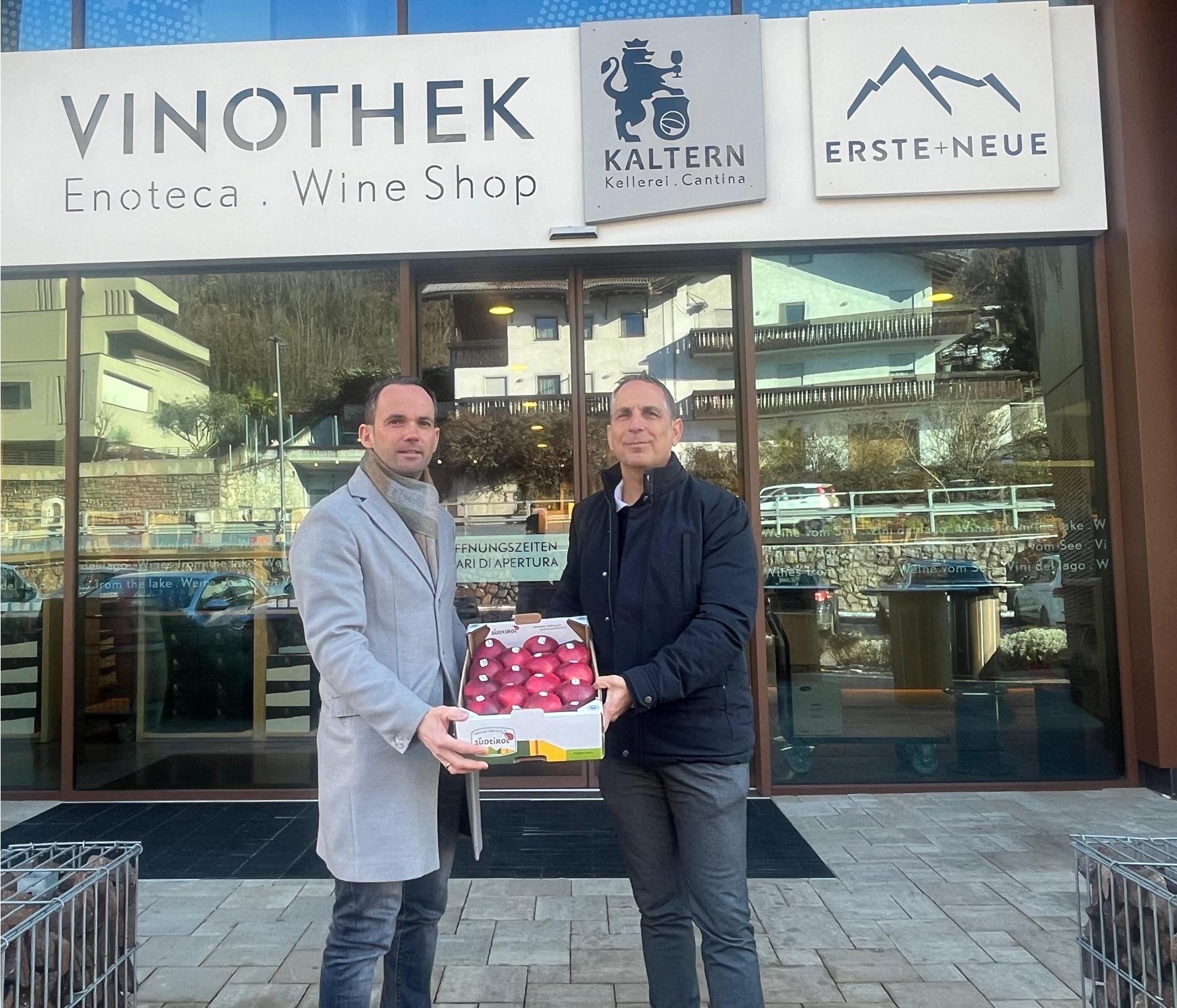 Foto von Harald Weis, Obmann des Südtiroler Apfelkonsortiums und Christian Sinn, Obmann der Kellerei Kaltern herunterladen (425,87 KB)