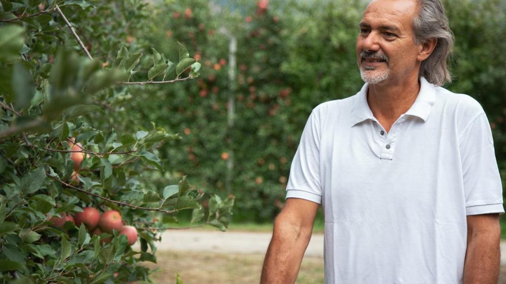 Auch der Alltag unterscheidet sich von dem der meisten Apfelbauern. Zwischen Gemeindearbeit, täglichen Terminen und Familie bleibt wenig Zeit für die Arbeit in der Wiese. Daher unterstützen ihn Saisonarbeiter und auch Sohn Tobias ist bereits in den Betrieb eingestiegen.